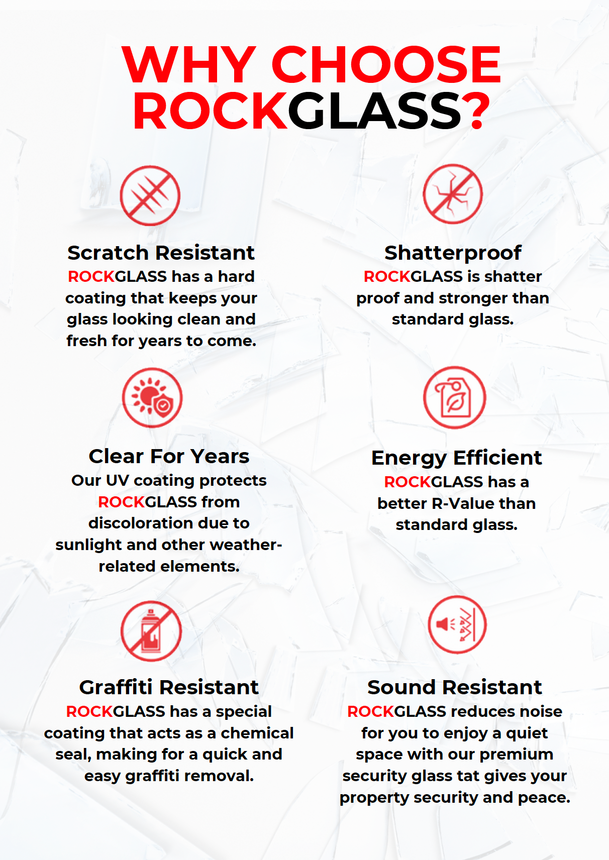 ROCKGLASS is an optically clear window security system that protects or replaces your existing glass windows from breaking, keeping you and your assets secure inside.