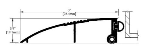3" aluminum door stop w/bulb seal, 3/4" rise